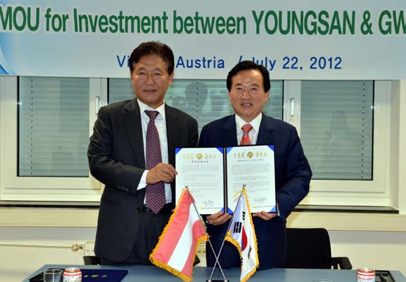 투자협약을 체결한 후 같은 자리에서 광주테크노파크도 영산그룹과 오스트리아 비즈니스센터 운영 계약을 체결했다.