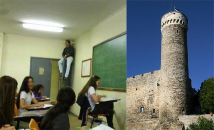 사진을 접한 누리꾼들은 "이게 사람이야, 감시탑이야", "컨닝은 절대 못하겠네", "어떻게 올라갔지" 등의 반응을 보였다.(사진-온라인커뮤니티)