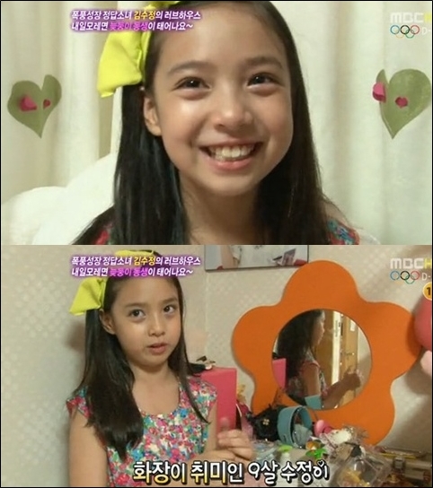 또한, 김수정은 메이크업 상자를 열어 보이며 "화장하는 걸 좋아한다. 엄마도 해주고 이모도 해준다. 가끔 나 혼자 화장하기도 한다"고 말했다.