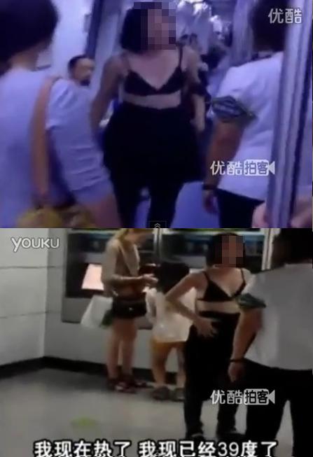 중국에서 한 여성이 속옷 차림으로 지하철역에 등장했다.