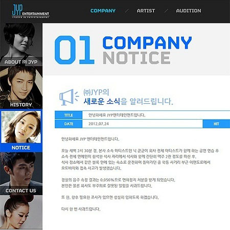JYP가 소속가수 닉쿤의 음주운전 접촉사고에 대해 공식 입장을 밝혀 화제다.