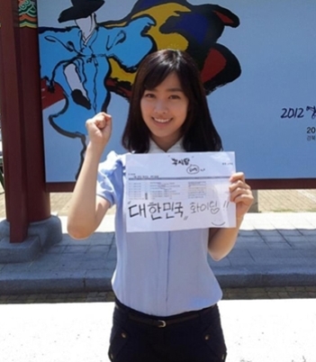 26일 방송 예정이었던 '각시탈'(극본 유현미, 연출 윤성식) 결방되는 가운데 배우 진세연이 2012런던올림픽에 참가한 한국 축구팀을 응원했다.