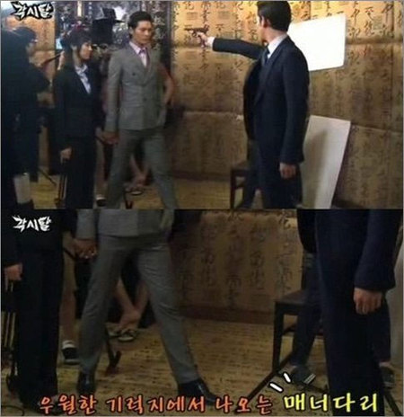 공개된 영상에서 주원은 기무라 슌지 역의 박기웅의 키에 맞춰 다리를 벌리고 있다.