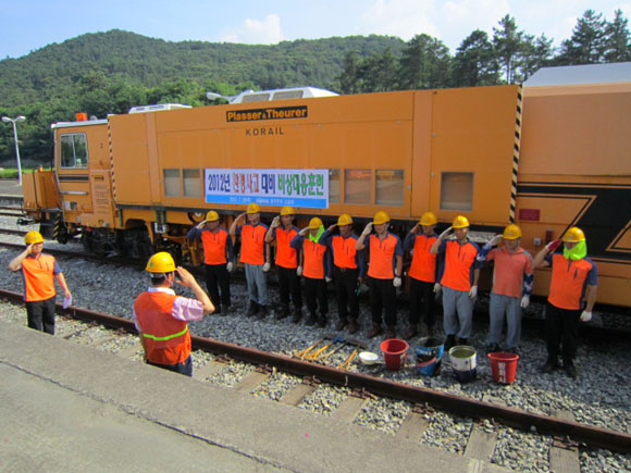 광주본부 시설처는 선로원형보수장비(1종보선장비) 작업중 연결호스에서 유압유 50리터가 유출되어 토양을 오염시키는 유압유 제거 훈련과 복구훈련을 실시했다.