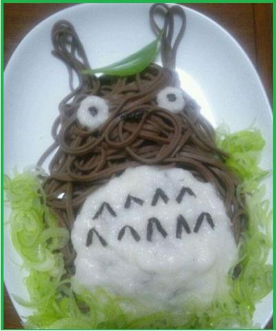 사진에는 국수와 야채 등 음식으로 만든 토토로 캐릭터가 접시에 담겨 있다.