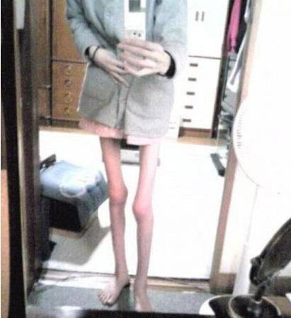 특히 사진 속 여성은 168cm의 키에 몸무게가 30kg인 것으로 알려져 더욱 놀라게 하고 있으며 창백한 피부와 톡하고 부러질 것 처럼 마른 다리로 인해 거식증을 앓고 있는 것으로 판단된다.