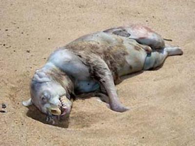 까맣게 그을려 죽어 있는 이 괴생명체는 얼핏 돼지를 닮았지만 자세히 살펴보면 발굽이 5개로 갈라져 돼지의 것과는 다르며 꼬리가 긴 것을 보아 개의 특징을 닮기도 해서 보는 이로 하여금 충격을 안겨준다.
