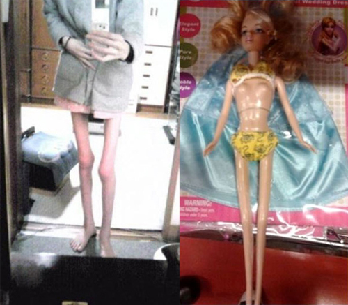 또한 지난 20일 온라인 커뮤니티에는 스웨덴의 한 완구점에서 팔리고 있다는 '거식증 걸린 바비인형'의 사진이 올라왔다.