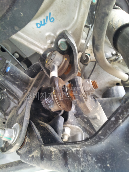 하지만 수리 후에도 똑같은 소음이 반복돼 차량 곳곳을 살펴 본 최 씨는 기가 막혔다. 얼마 전 수리를 받은 차량 하부의 브레이크 디스크 및 머플러 용접부위 볼트가 녹슬어 있는 상태였던 것.