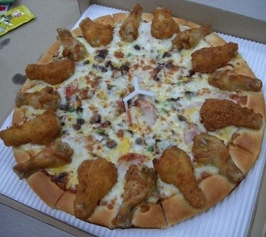 이 피자와 치킨을 한꺼번에 먹을 수 있는 치킨피자 사진에 누리꾼들은 감탄을 보냈다.