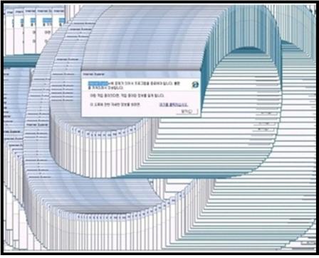 게시물의 컴퓨터 화면에는 오류가 떠 물결모양을 만들고 있어 짜증나는 상황을 나타내고 있다.