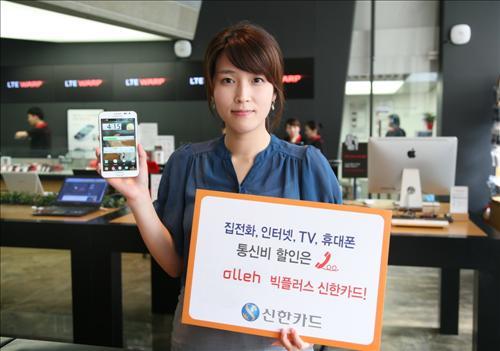 'olleh 신한카드'는 olleh 인터넷, TV, 집전화, 인터넷 전화, 휴대폰 등의 요금을 자동이체하면 매월 8천원을 할인해 준다. 통신 요금이 8천원 미만일 경우 그 금액 전체가 할인된다.