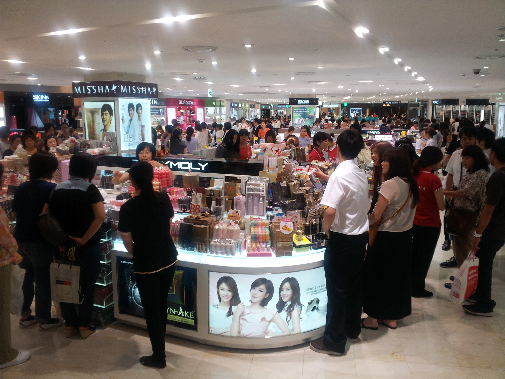 롯데, 신라면세점의 2분기 역대 최고 매출을 견인한 최고 고객은 다름 아닌 한국화장품에 열광하는 중국인들이었다. 중국인 가이드를 담당하는 이미경(32)씨는 “일본인이 강세였던 롯데면세점도 최근 중국관광객이 대거 몰리고 있다”며 “이들은 보통 면세점에서 100만원정도 쓰는데 대부분 국산브랜드 화장품을 많이 산다.”고 전했다.