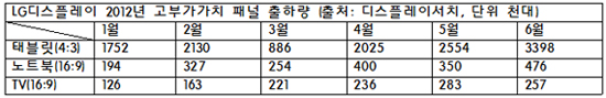 특히 태블릿 PC와, 노트북 PC, TV 등 고부가가치 패널이 호조를 보이면서 수익성이 크게 높아졌다는 평가다.