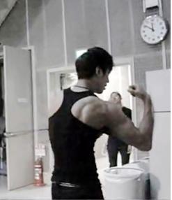 정용화는 연습실에서 민소매 티셔츠 차림으로 터질 것 같은 팔근육을 과시하며 나비 등근육을 자랑해 보는 이들의 감탄을 자아냈다.