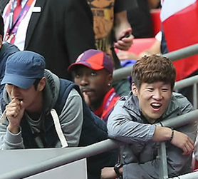 2일(한국시간) 새벽 2012 런던올림픽 한국과 가봉이 맞붙는 축구 B조 조별리그 3차전 현장에 박지성(31. QPR)과 이청용(24, 볼튼)이 발견됐다.