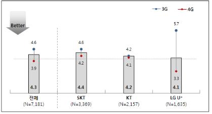 KT와 SK텔레콤은 4G 통화품질 문제가 각각 4.1건, 4.2건이 제기돼 LG유플러스에 비해 소비자들의 불만이 높은 것으로 나타났다.