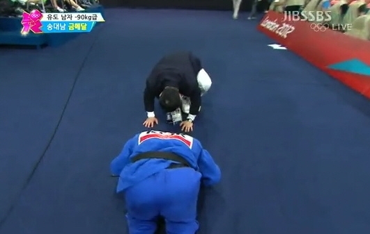 2012 런던올림픽 금메달리스트 송대남이 정훈 감독 맞절 세레모니를 펼쳐 화제다.