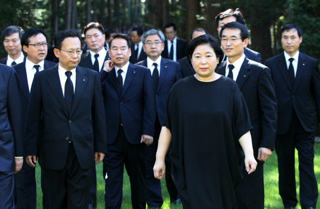 정 전 회장의 부인 현정은 현대그룹 회장은 이번에 방북하지 않았다. 현 회장은 이날 오전 10시께 계열사 사장단, 임직원 등 200여 명과 함께 경기 하남시 창우리에 있는 선영을 찾아 고인을 추모했다. (사진=연합뉴스)