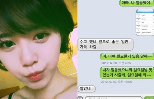 이어 구혜선은 "내가 일등 했으니까 맛있는거 사줄게"라고 보냈고, 아버지는 "알았네"라고 짧게 답했다.