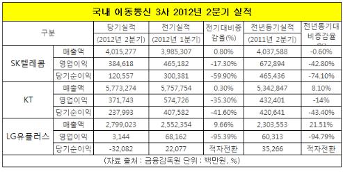 SK텔레콤과 KT, LG유플러스등 통신3사가 2분기에 예상 보다 훨씬 부진한 실적을 냈다. LTE시장을 둘러싼 과열경쟁으로 마케팅비용과 투자 지출이 대폭 증가하면서 영업이익과 순이익을 크게 갉아먹었다.