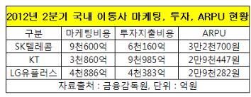 실제로 SK텔레콤이 2분기에 지출한 마케팅비용(마케팅 수수료+광고선전비)은 9천600억원으로 1분기보다 32.4%나 많다. SK텔레콤의 분기별 마케팅비는 평균 7천억원 수준임을 감안하면 2분기에 과도한 지출이 이뤄졌음을 알 수 있다.