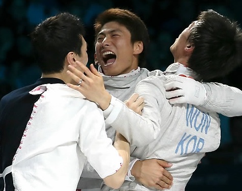 한국이 올림픽 출전 사상 100번째 금메달을 땄다. 주인공은 한국 펜싱 남자 사브르 대표팀. 사브르 대표팀은 4일 새벽(한국시간) 영국 런던 엑셀 경기장에서 열린 2012 런던올림픽 남자 단체전 결승전서 금메달을 거머쥐었다.