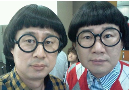 사진에는 개그맨 남희석과 최양락씨가 등장하며 두사람 모두 우스꽝스러운 바가지머리와 동그란 검정뿔테 안경을 쓴 채 떨떠름한 표정을 짓고 있다.