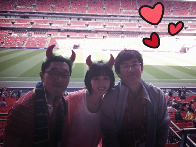 배우 한혜진은 지난 2일 자신의 트위터에 “웸블리 스타디움(Wembley stadium)에서 우리 아저씨들이랑”이라는 짧은 글과 함께 사진 한 장을 올렸다.