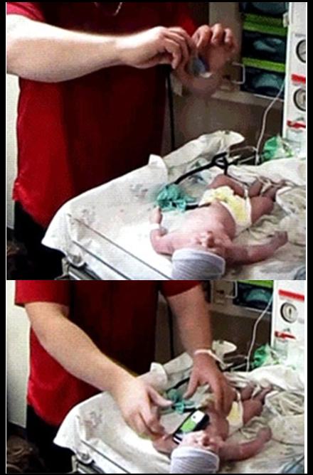 공개된 사진에는 아빠가 갓 태어난 아기에게 휴대폰 카메라를 들이대고 있다. 이어 다음 사진에는 촬영 도중 휴대폰을 떨어뜨려 아기에게 충격을 가했다.