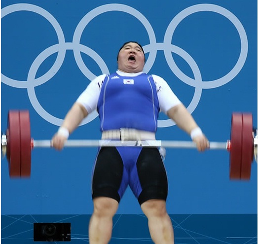 장미란이 5일 오후(현지시간) 영국 런던 엑셀 아레나에서 열린 2012 런던올림픽 여자 역도 75㎏ 이상급 경기에서 인상 3차시기에 129kg에 도전했으나 아쉽게 실패하며 인상 경기를 마쳤다.