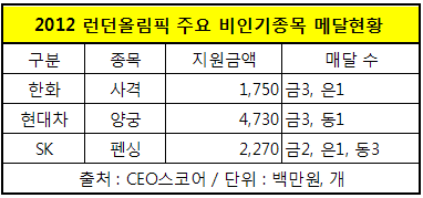 예상외의 한국선수단 성과에 이들 기업의 후원이 큰 힘을 보탠 것이다.