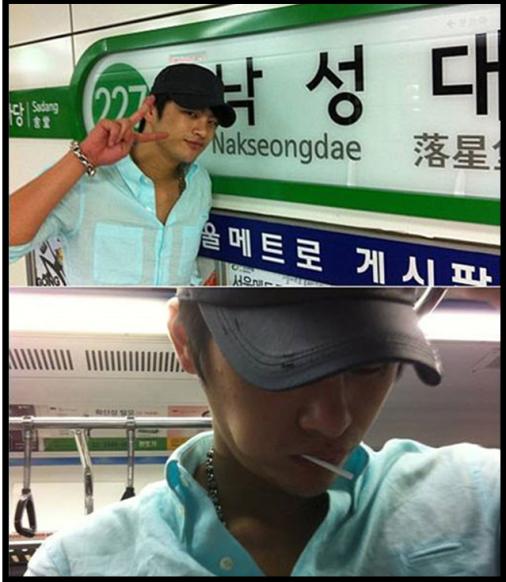 공개된 사진 속에 서인국은 서울 지하철 2호선 낙성대역에서 포즈를 취하고 있다.