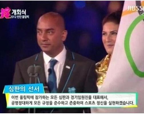 사진의 심판의 선서를 살펴보면 “이번 올림픽에 참가하는 모든 심판과 경기임원진을 대표해서 공명정대하게 모든 규정을 준수하고 존중하여 스포츠 정신을 실현하겠습니다”고 적혀있다.