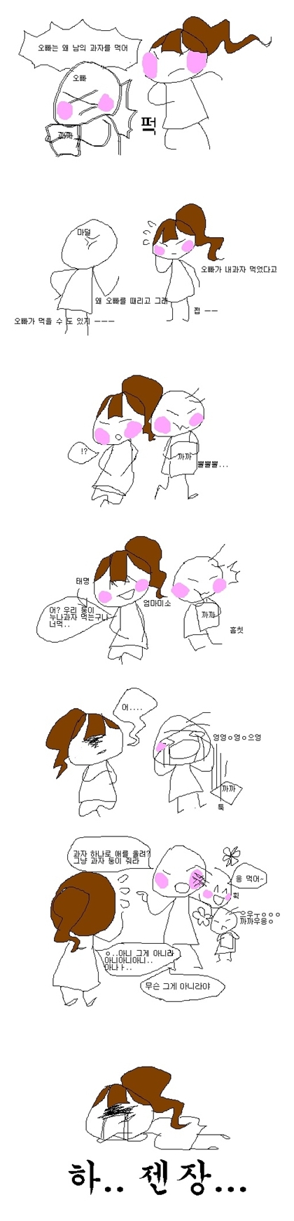 '둘째의 서러움'이라는 만화에서 둘째는 오빠에게 "왜 남의 과자를 먹어"라며 화를 냈다. 둘째가 엄마에게 가서 이르자 엄마는 "왜 오빠를 때리고 그래. 오빠가 먹을 수도 있지"라며 오히려 둘째를 혼낸다.