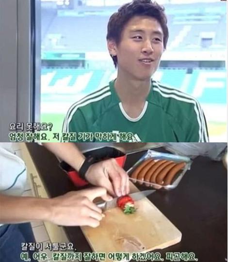 게시물에는 구자철이 한 방송에서 “엄청 잘 해요. 저 칼질 기가 막히게 해요”라고 말하고 또 다른 장면에서 서툰 칼질을 선보인다.