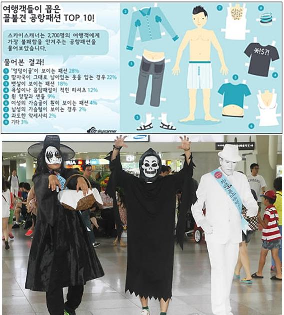 여행 사이트 '스카이스캐너'에서는 지난 7일 전 세계 여행객 2700명을 대상으로 '꼴불견 공항패션'에 대한 설문조사를 실시했다.