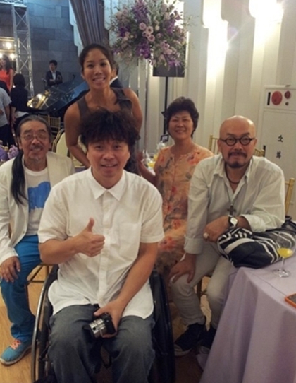 공개된 ‘임윤택 결혼식 하객’ 사진 속에는 엄지 손가락을 들고 있는 강원래를 중심으로 김송, 이외수, 디자이너 이상봉이 한 자리에 모여 있는 모습이 담겨 있다.