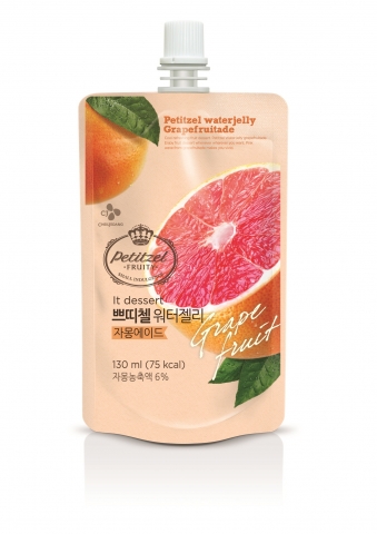 '워터젤리 자몽에이드'는 사과, 오렌지, 포도, 복숭아에 이어 5번째로 출시한 워터젤리 제품으로, 개폐가 가능한 캡이 달린 치어팩 용기를 사용해 휴대가 편한 것이 장점이다.