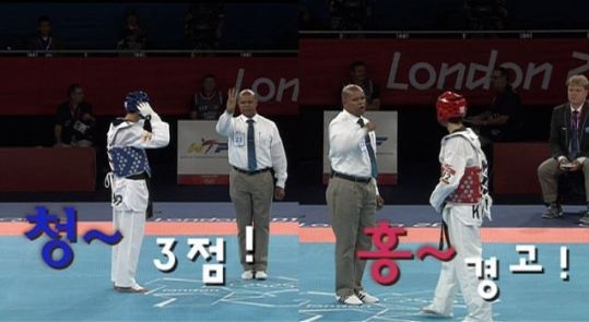 이대훈과 호엘 곤살레스 보니야 태권도 경기의 심판이 화제다.