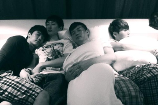 사진은 동해, 은혁, 신동, 려욱 등 슈퍼주니어 멤버들이 한 침대에 누워 단체로 수면을 취하고 있는 모습을 담고 있다. 장수 아이돌 그룹 답게 끈끈한 우정을 과시하고 있어 눈길을 끈다.