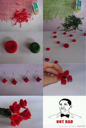'지우개 가루 예술가' 사진 속에는 지우개 가루를 이용해 장미꽃을 만드는 과정을 담고 있다. 빨간 색연필과 초록 색연필을 사용한 뒤 지우개를 이용해 지우개 가루를 만들어낸다. 이어 해당 지우개 가루를 이용해 장미를 만드는 방식이다.
