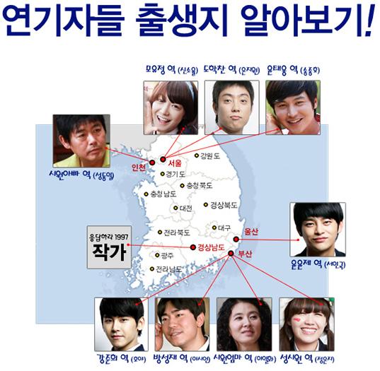 응답하라 1997 주인공들 대다수가 경상도 출신이었던 것. 먼저 걸그룹 '에이핑크' 멤버로 첫 연기 도전임에도 불구하고 쏟아지는 호평 속에 '연기신동'이라는 애칭을 얻고 있는 정은지는 부산 토박이다.