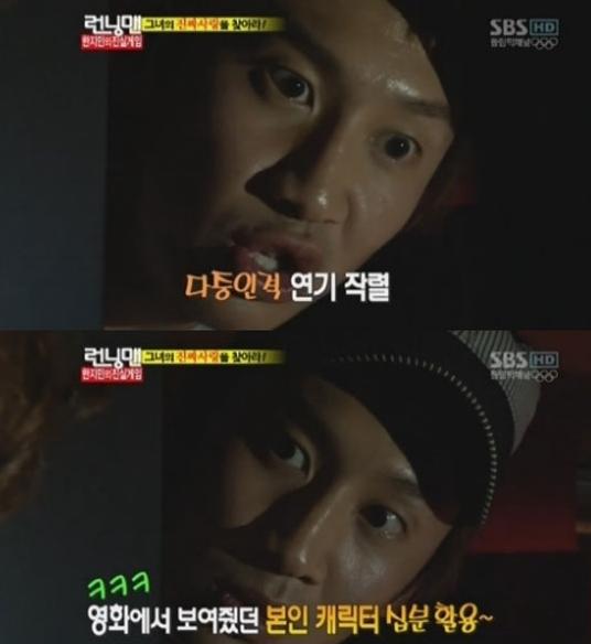 김종국의 살벌한 표정에 겁을 먹은 이광수는 "저는 광수가 아니에요. 아래서 만났어요"라며 다중인격 연기를 펼쳤다.