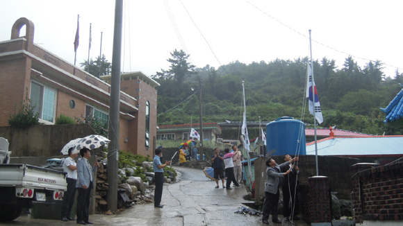 북암리 태극기 마을은 지난달 17일 소안면에서 소안항에서 달목공원까지 1.3km를 태극기 거리를 조성한 후 8·15 광복절을 맞아 북암리 마을 35세대가 처음으로 14일 오전 11시 자체 국기 게양식을 개최했다.
