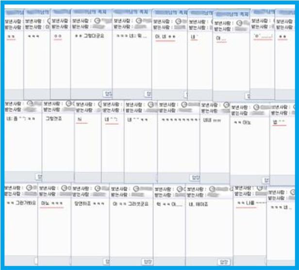 게시물에는 여자가 메신저로 쪽지로 답한 내용들이 담겨있다.