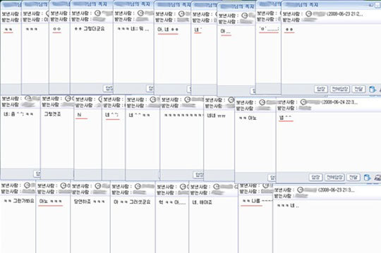 게시물 속 메신저로 나눈 대화 중 여성의 답변을 갈무리 한 것으로 내용에는 'ㅋㅋ', 'ㅇㅇ', '아 네ㅎㅎ', '넵^^' 등 단답형 대답이나 인터넷 채팅용 줄임말들이 담겨 있다.