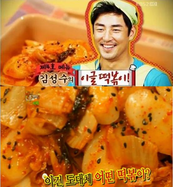 김성수는 "냉장고에 남은 떡국 떡과 김치만으로 간편하게 만들 수 있다"고 '이글 떡볶이'를 소개했다.