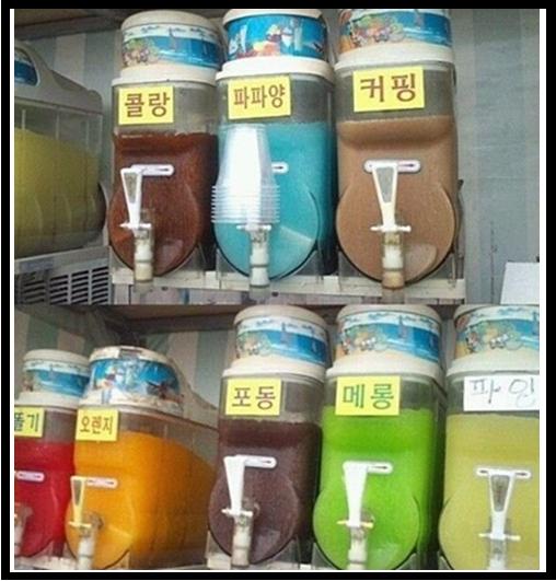 공개된 사진에는 슬러시에 '포도', '메론' 등의 이름을 '포동', '메롱', '파파양', '똘기', '커핑', '콜랑'등의 귀여운 애교가 섞인 발음으로 붙여놓았다.
