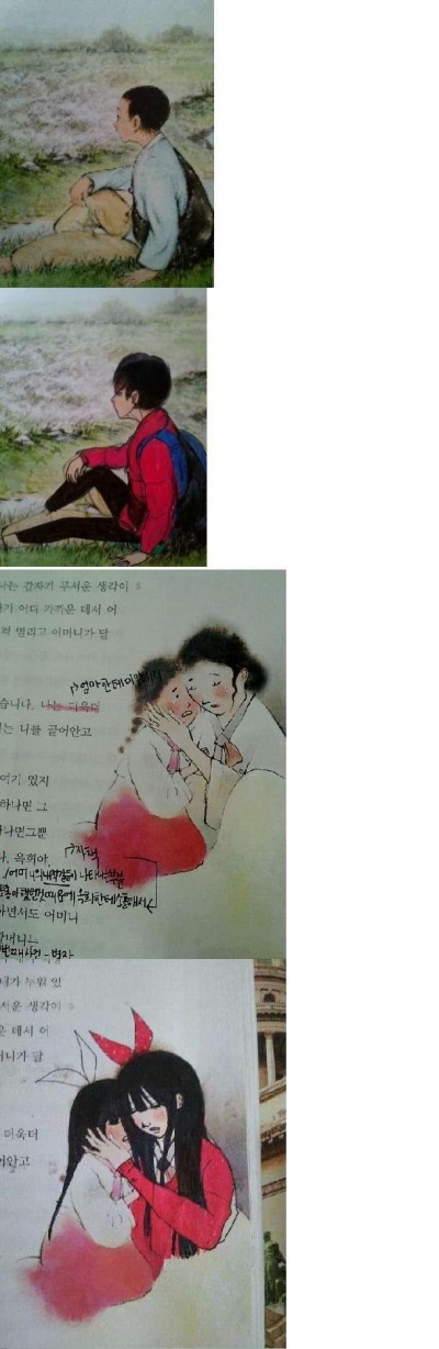 게재된 사진 속에는 교과서 속에 등장하는 인물을 훈남훈녀로 바꿔놓은 모습이 담겨있다.